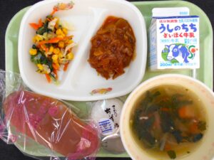 ~今日の給食~ 牛乳 クロックムッシュ ほうれん草とペンネのクリーム煮 三食サラダ です。 今日は、新メニューのクロックムッシュでした。 1つ1つ食パンにソースを塗り、ハムとチーズでを乗せてオーブンで焼きました。 子供た […]