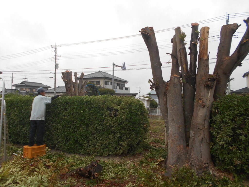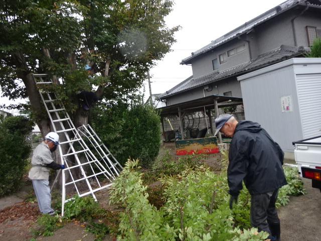 今日は、あいにくの雨。。。みんなのいない校庭で、今日は木の伐採をしていただきました。こうやって、少しずつきれいになったり、使いやすくなったりしてみんなの安全が保たれているのですね。みんながいつもお世話になっている畑の先生も、お手伝いに来てくださいました。