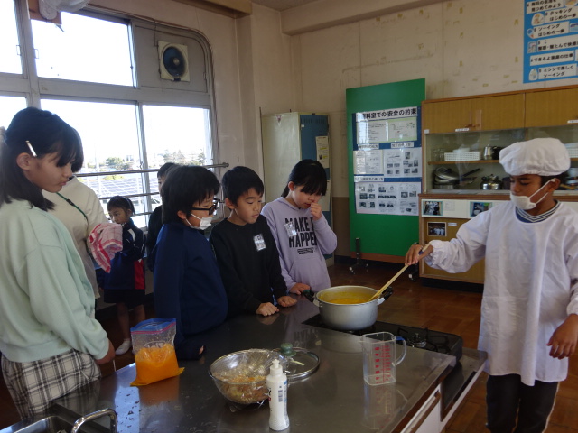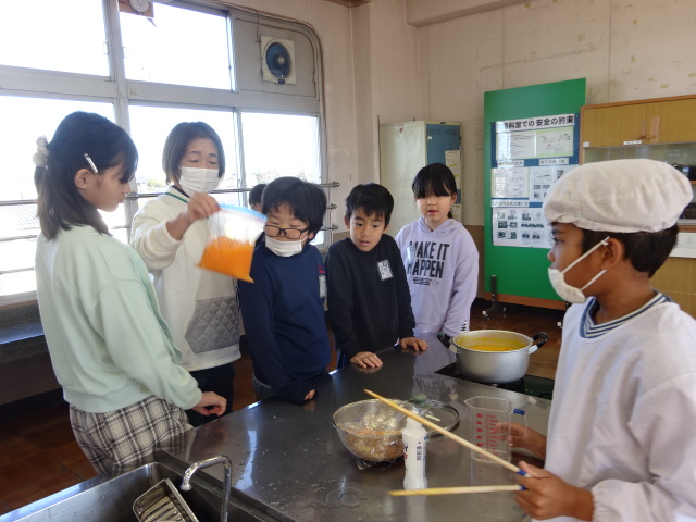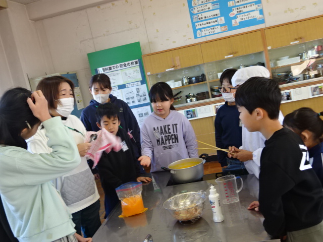 ひ組さんは、たくさんの経験を重ねて、いろんなことができるようになっています。今日は、分担をしてオレンジ果汁でゼリーづくりです。しくみや約束を守れるチームになっています。