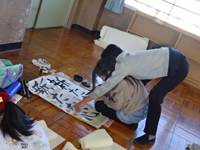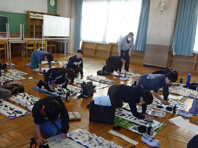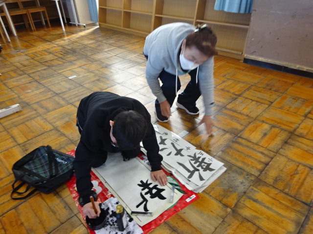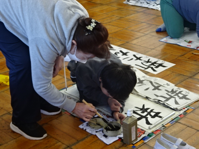 5年生は書き初めです。今年は太く、大きく書くことができています。うれしい成長。頑張ってます。