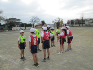 チームで作戦を考え、かけ声をかけて練習をしていました。
