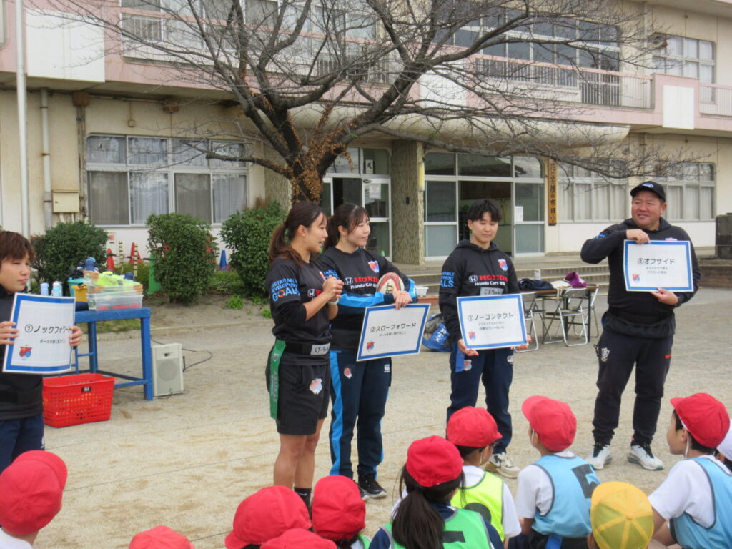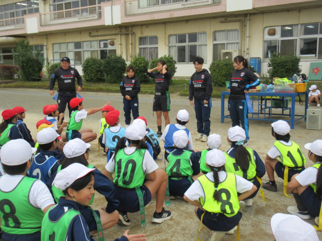 アルカス熊谷の5名の先生を迎えてタグラグビー教室を行いました。