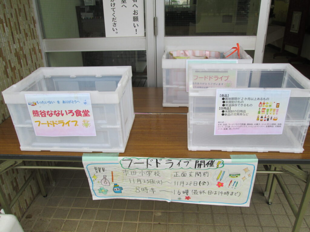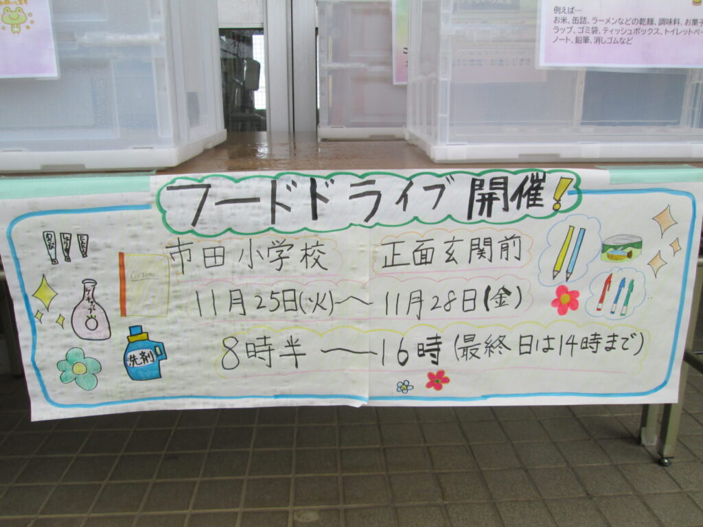 11月25日(火)~28日(金)8:30~16:00まで市田小学校でフードドライブを行っています。