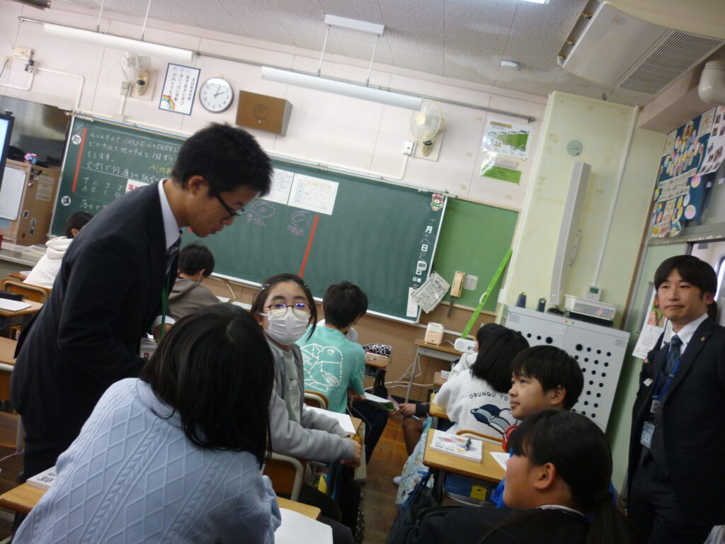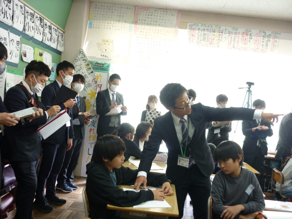 今日は市田小学校が埼玉県中堅教諭等資質向上研修(北部地区)の算数研修会場となりました。たくさんの先生方が勉強に来て、児童のみなさんは興味津々。主には6年生の先生の授業を中心に、研修が進んでいきました。