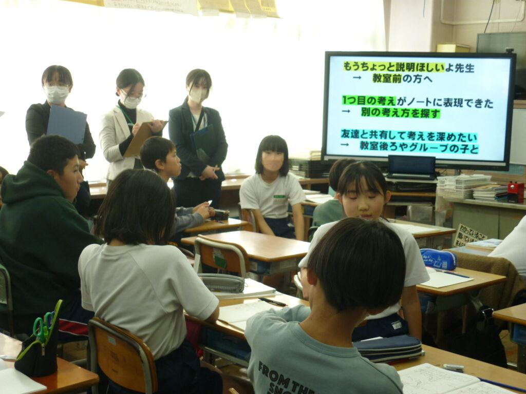 話し合いあり、6年生のつぶやきあり、笑いあり。。。楽しい授業となりました。市田小学校は先生方の楽しい授業で「算数すき!」って言ってもらえる授業を目指します。たくさんの先生方に見てもらって6年生も楽しそうでした。そして6年生の先生の授業もさすがの授業。テンポよく、研究しつくした「子供達にじっくり考えさせる授業」となりました。