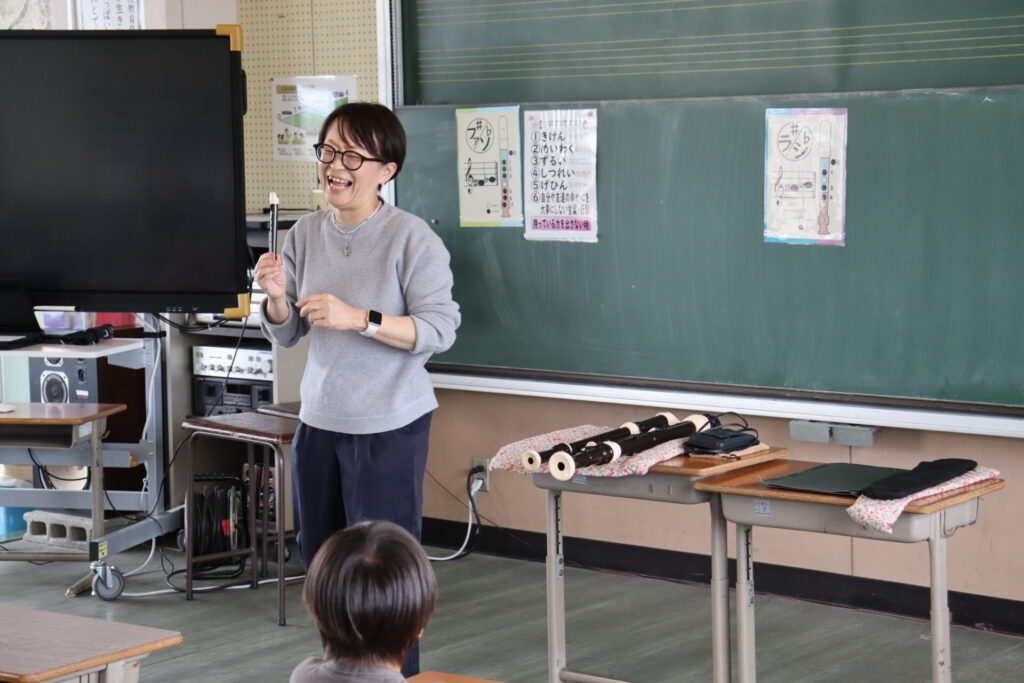 初めて手にする楽器を前に、子供たちは興味津々。講師の先生から教わる指使いや息の吹き方に集中し、きれいな音色が響くと教室中に笑顔が広がりました。演奏された曲を聞いた瞬間に「あっ!○○だ!」「知ってる!」と目を輝かせて食いついていました。