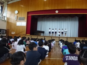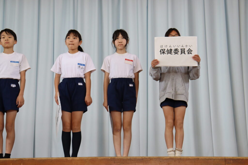 業前の時間に代表委員会と各委員長の紹介が行われ、学校を引っ張るリーダーたちが頼もしい決意を語りました。自分の頑張りたいことを大切に全校児童の前で堂々と話す姿は頼もしかったです。さすが6年生。中にはセリフを暗記して、全校児童を見渡しながら話をする姿はとてもかっこよかったです。これからの市田小の委員会、学校運営をよろしくね!