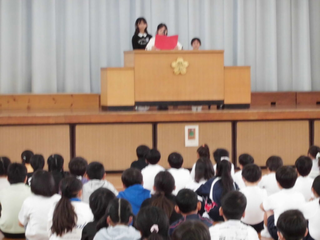 秋休みが終わり、後期が始まりました。全校朝会では、校長先生から、チャレンジすることについて話がありました。「やってみなければ、一歩を踏み出せない」「うまくいくことよりも、続けられることが素晴らしい」という話の通り、後期は自分から先にあいさつをしたり、文章をたくさん書いたりすることもできるようになってほしいと思います。3人の児童による作文発表もありました。目標を達成できるように、がんばってほしいです。