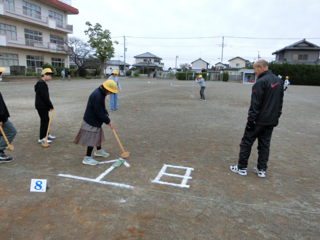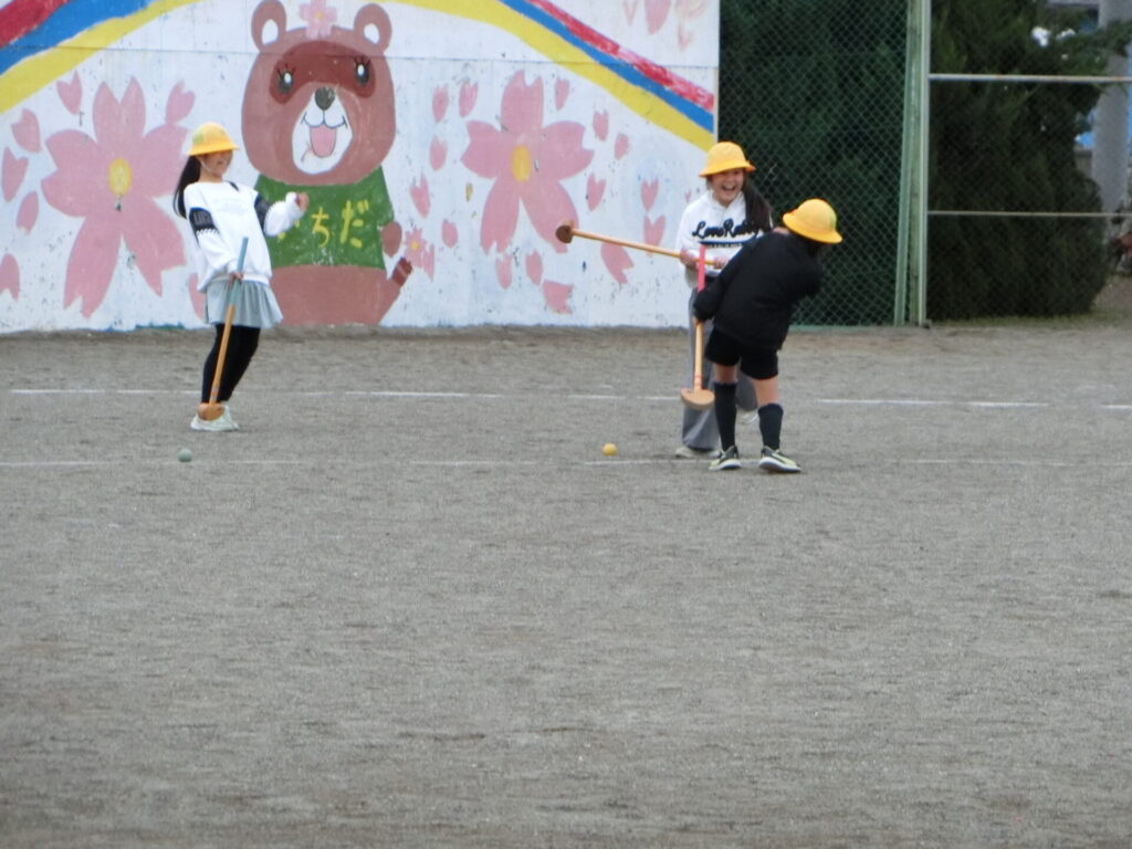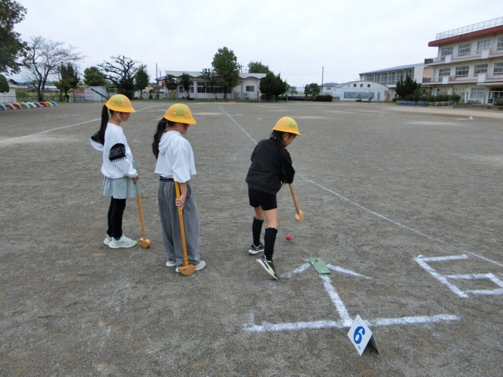 今日は放課後子ども教室でグランドゴルフを行いました。