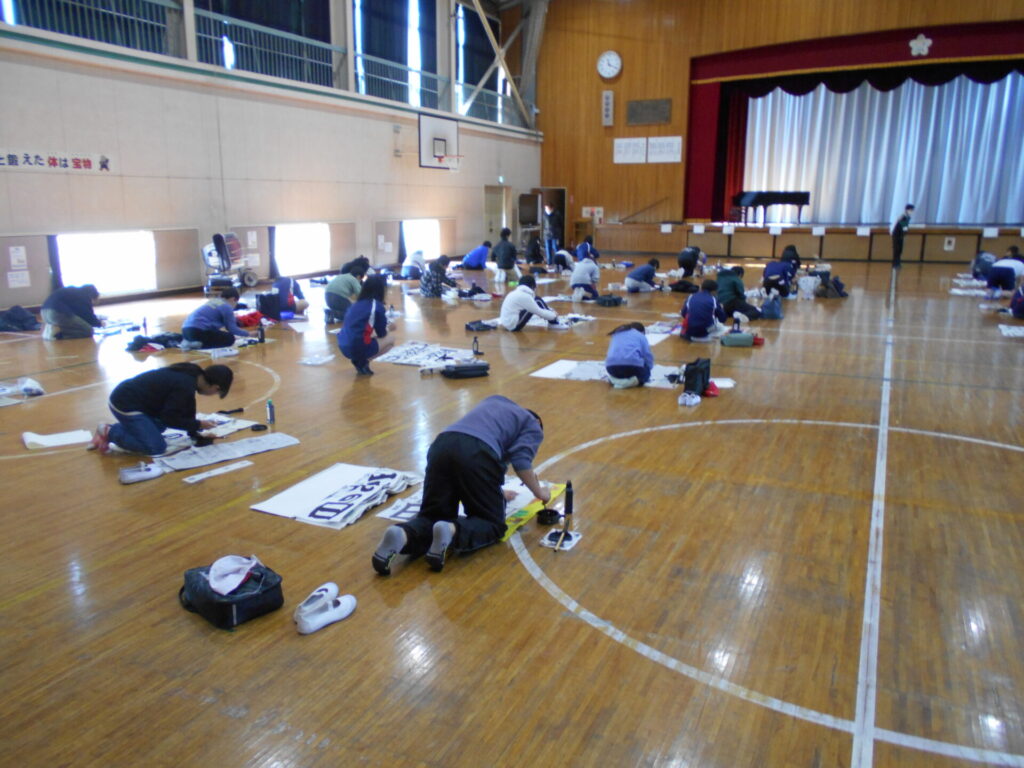 今日は書きぞめ制作会。12月からずっと練習をしてきましたがいよいよ本番。