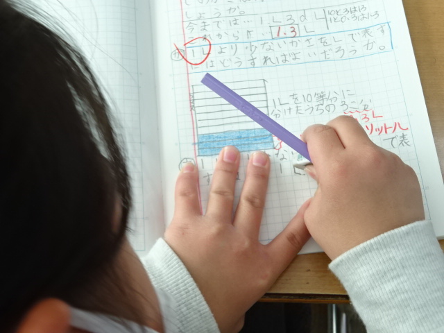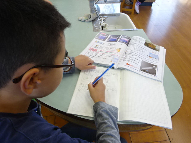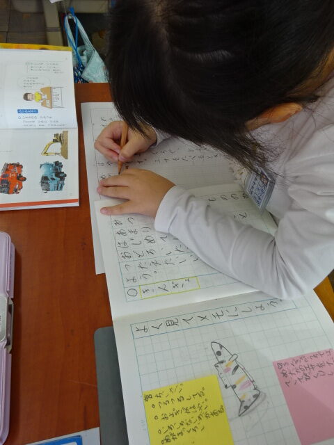 理科だって書きます。今日実験で分かったことを熱心に言葉にしていました。