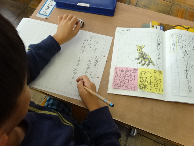 1年生、作文メモをもとに作文を書きました。こんなに書けるようになったのだと、びっくりしました😲