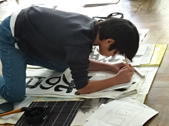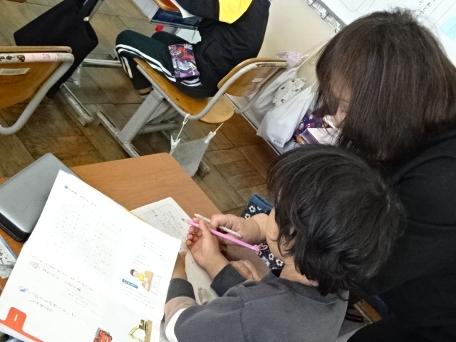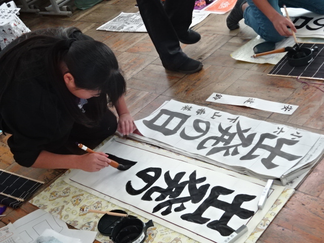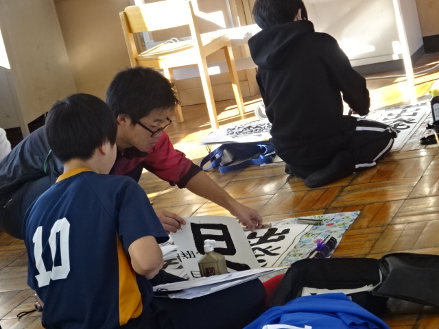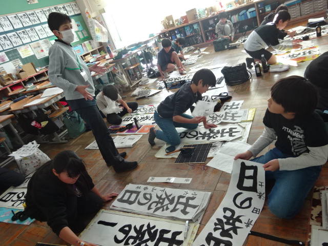 6年は書き初め。太く太く…し~んと静かな教室で黙々と書く姿はさすがです。
