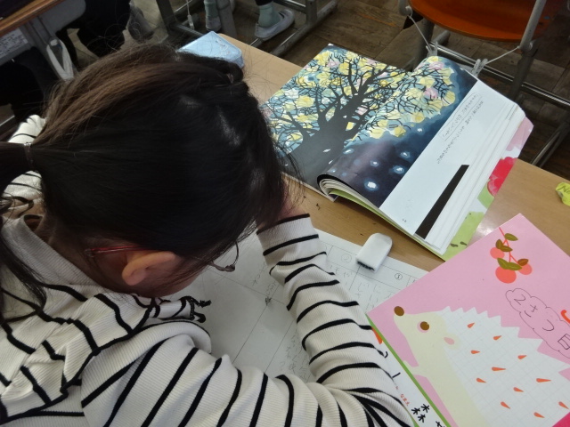 3年生はモチモチの木を学習中。教科書から言葉を探す学習でした。