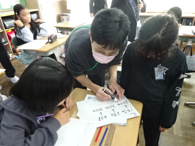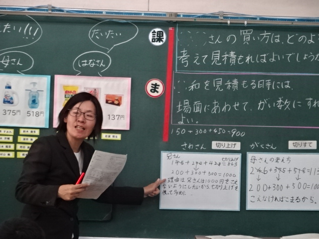 今日は、4年生のがい数について学びました。先生方も指導案を検討し、みんながどうしたら楽しく、豊かに学べるかを考える日でした。熊谷市教育委員会の先生も来てくださり、先生方も学びの1日となりました。