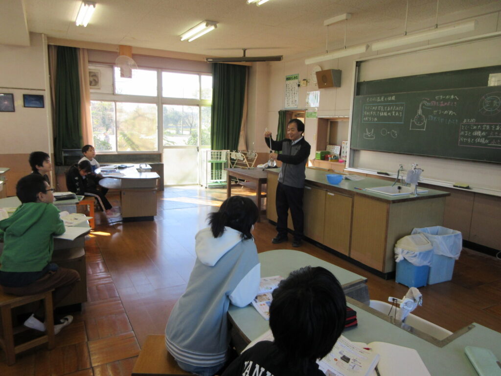 今日は理科で閉じ込めた空気を温めたり冷やしたりすると空気はどうなるか実験をしました。