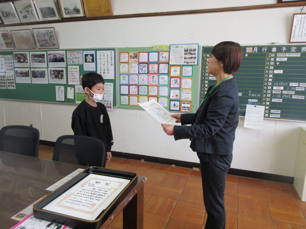 表彰式その2 2026年3月6日 最終更新日時 : 2026年3月6日 kumagaya_edit 昨日多くのお友達が表彰を受けました。 昨日表彰ができなかった児童の表彰を校長室で行いました。 体育館でなくても元気な返事、きれいな礼ができました。