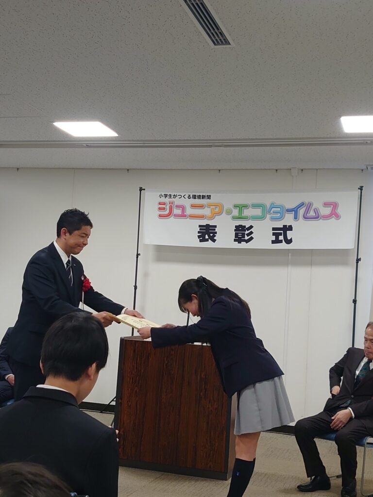 3/14(土)埼玉会館においてジュニアエコタイムスの表彰式があり、市田小学校の児童が表彰されました。本当におめでとうございます。学校の学びは自分の力となって、広い世界で勝負できることを教えてくれます。「好き」をのばすこと。「楽しい」をふやすこと。「え~苦手」もやってみること。みんなの未来は無限大です。