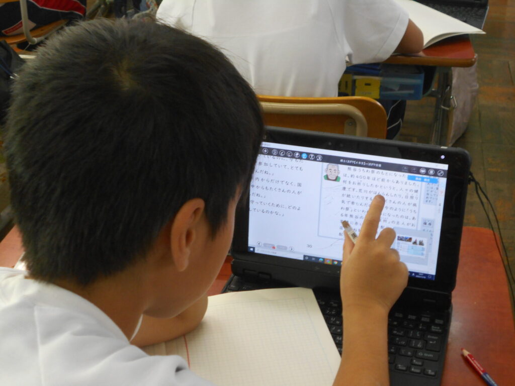 4年生はうちわ祭りについて学習中です。タブレットも上手になりました。2年生は、九九を1つずつ創っています。踏ん張り時です。