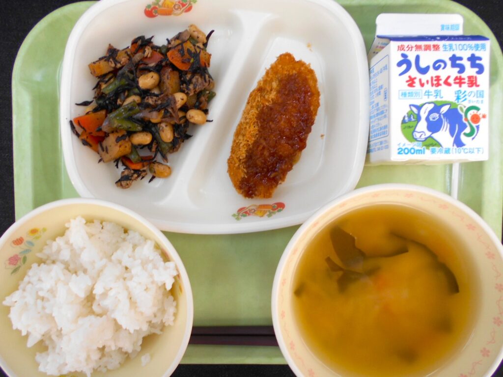 牛乳 ごはん 豆腐とわかめの味噌汁
