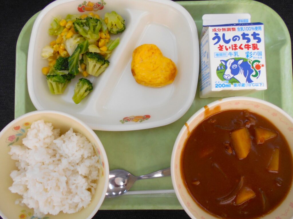 11/20 今日の給食 2025年11月20日 最終更新日時 : 2025年11月20日 kumagaya_author ~今日の給食~ 牛乳 ごはん ハヤシライス オムレツ ブロッコリーとコーンのソテー です。