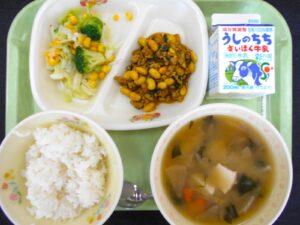 4/15 今日の給食 2025年4月15日 最終更新日時 : 2025年4月24日 kumagaya_author ~今日の給食~ 牛乳 たけのこご飯 すまし汁 あじフライ ゆでキャベツ です。 今日の給食で使用したたけのこは、昨日2年生の皆さんが皮をむいてくれたたけのこです。